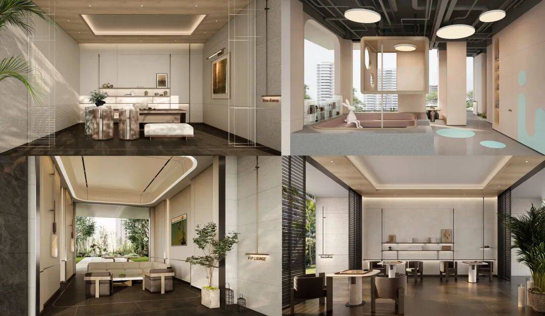 【约3000㎡下沉式会所】成人恒温泳池、儿童恒温泳池、健身房、瑜伽室、业主餐厅、私宴厅、棋牌室、下沉酒吧等多样邻里复合功能,满足业主社交、健身等多种需求;