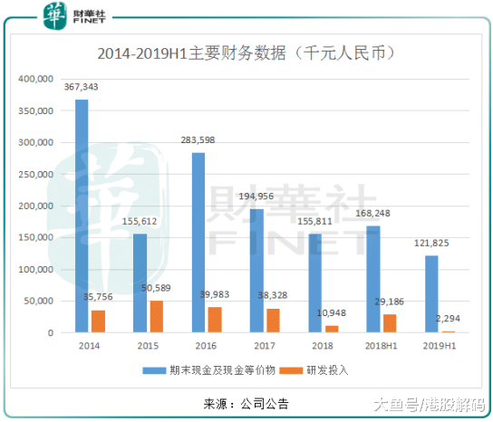 股价上,公司上市以来,在2015年5月的牛市中创新高,之后股价不断下跌,相较于2015年5月股价最高点9.48港元每股,截至2019年11月14日,公司股价0.66港元每股,股价跌去93%。同时,市值的减少,盈利能力的减弱,融资金额也会受到很大限制。