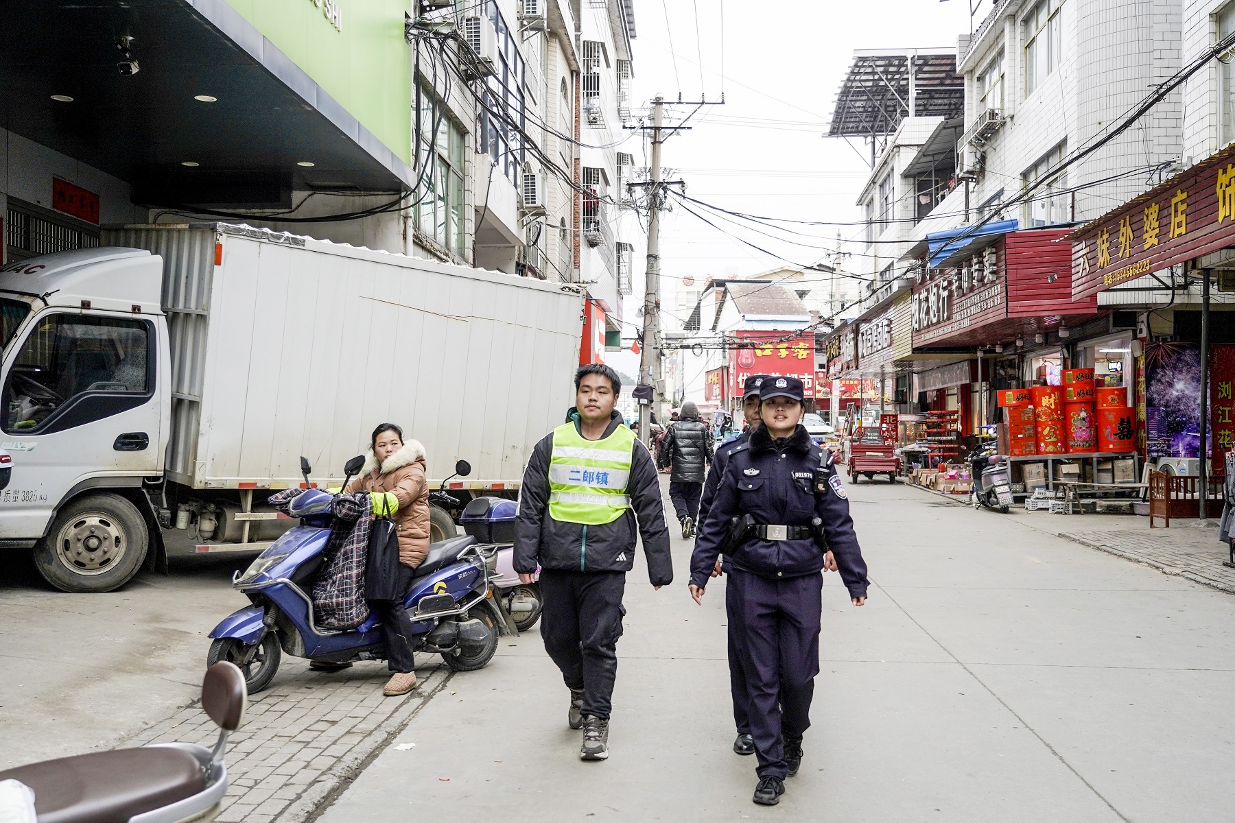 地处皖鄂交界的二郎镇,是皖西南闻名的千年商埠,二郎街作为鄂皖边际农副产品集散地,聚集着5000余名居民、250余家商铺,日均人流量超2000人次。“店铺密集、人流车流交织,矛盾纠纷、交通拥堵曾是治理顽疾。”二郎派出所所长张邯兵介绍,以往逢年过节,单日接处警量最高达20余起,其中交通类、消费纠纷类占比超六成。如何在保障市场繁荣的同时守住平安底线,成为该所亟待破解的课题。